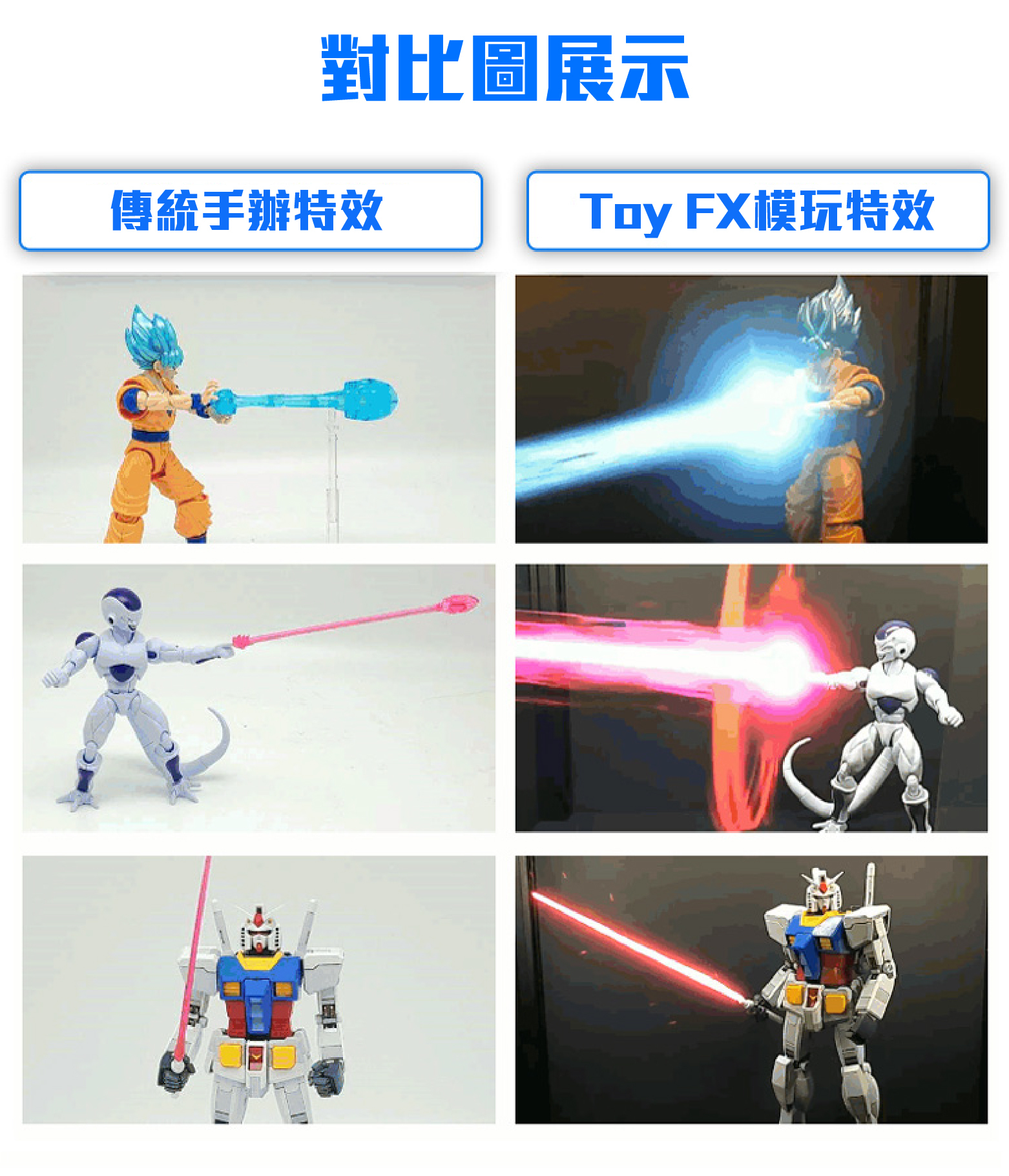 讓靜態模型動起來!「ToyFX BOX Display Case」(全息模玩特效展示盒)利用全息投影技術,為模型擺設增添動感,例如《魔神英雄傳》中的龍王號,便能使出各種絕招,浮現出魔法陣等。其他如《龍球》的悟空,可以「儲氣」出龜波氣功;《聖鬥士星矢》的獅子座艾奧里亞,使出絕技閃電光速拳等等。