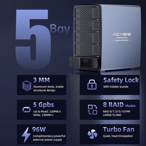 Acasis 5位Raid 2.5/3.5 吋 HDD&SSD 外接硬碟盒