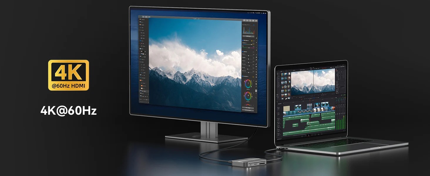 USB C 底座:ACASIS 6 合 1 USB C 底座提供 4K HDMI、SD/TF 讀卡機、快速 USB C 和 USB A 連接埠,提升設備連接效率。