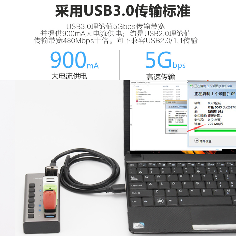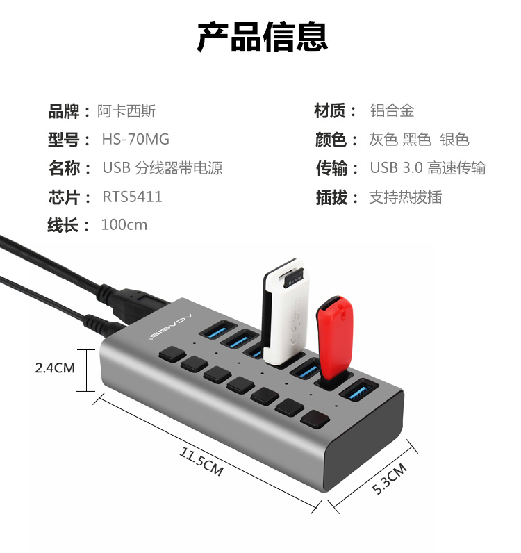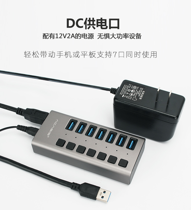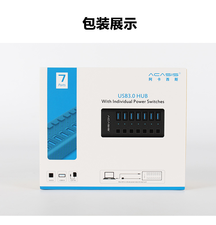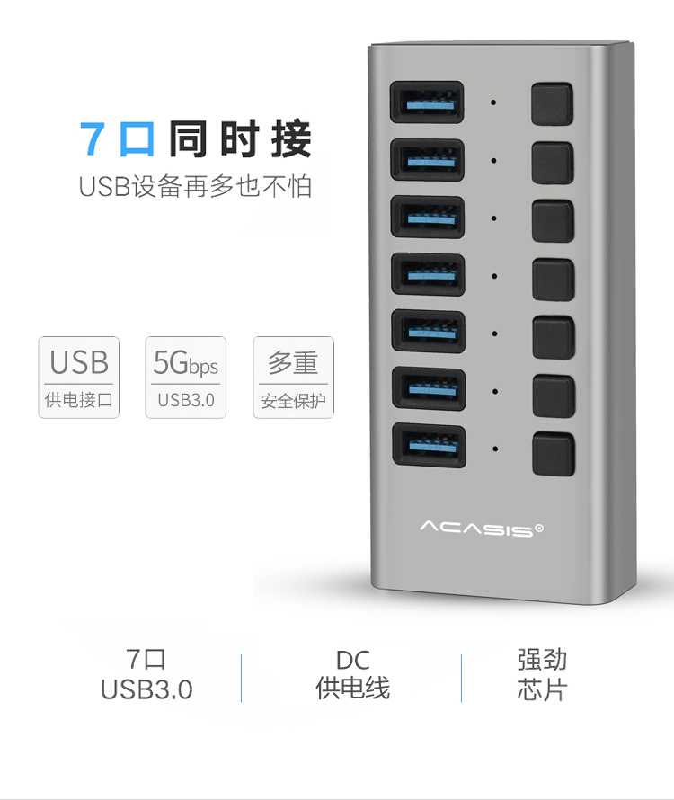 ACASIS鋁殼usb3.0 7/10/13/16端口12V 5A電源分配器