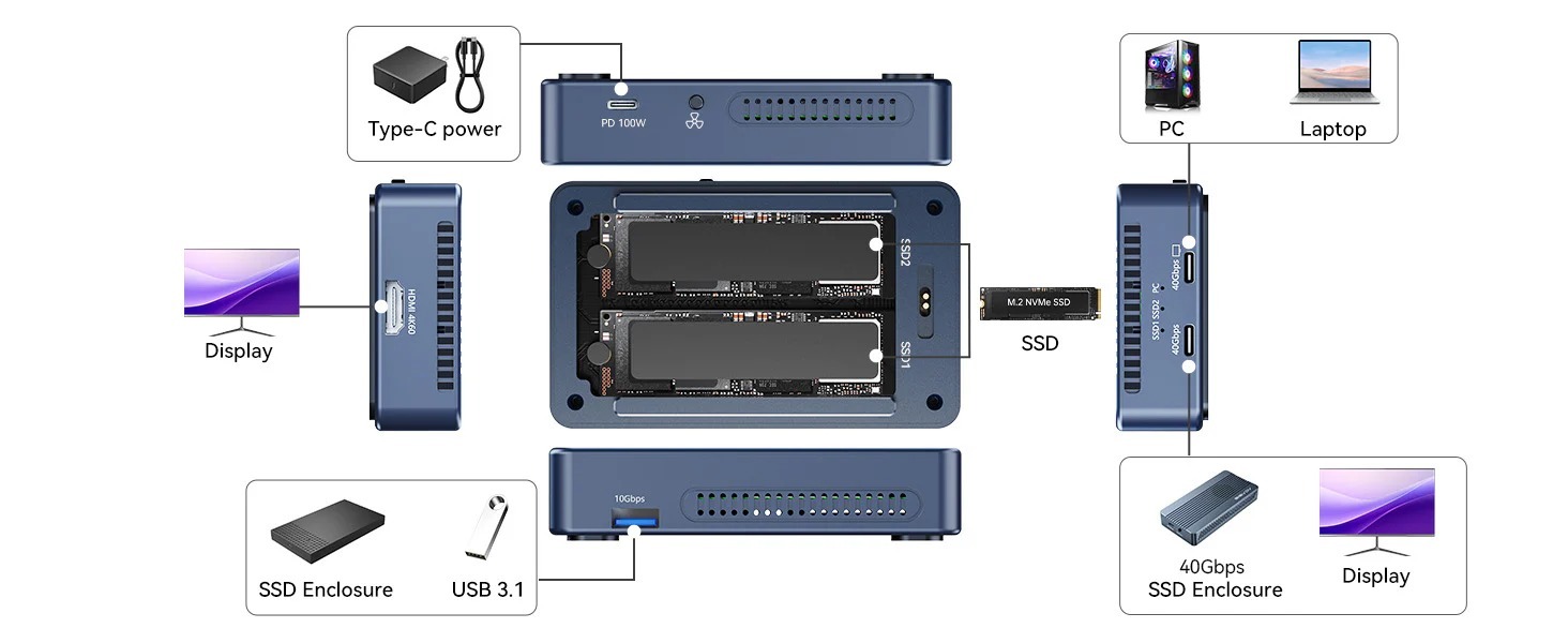 -Port﹕HDMI/USB C/USB-A.PD 100D