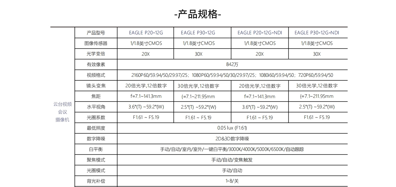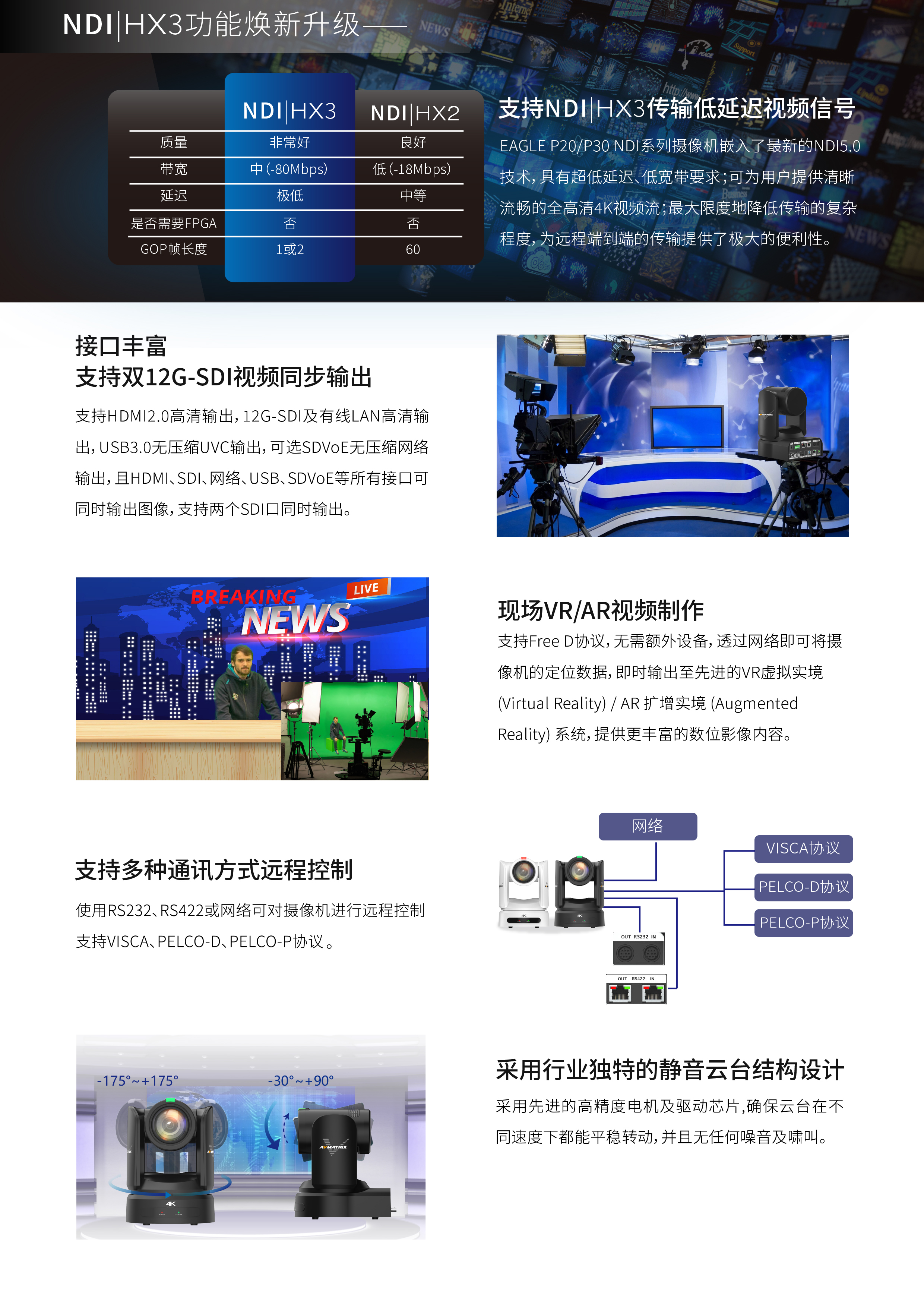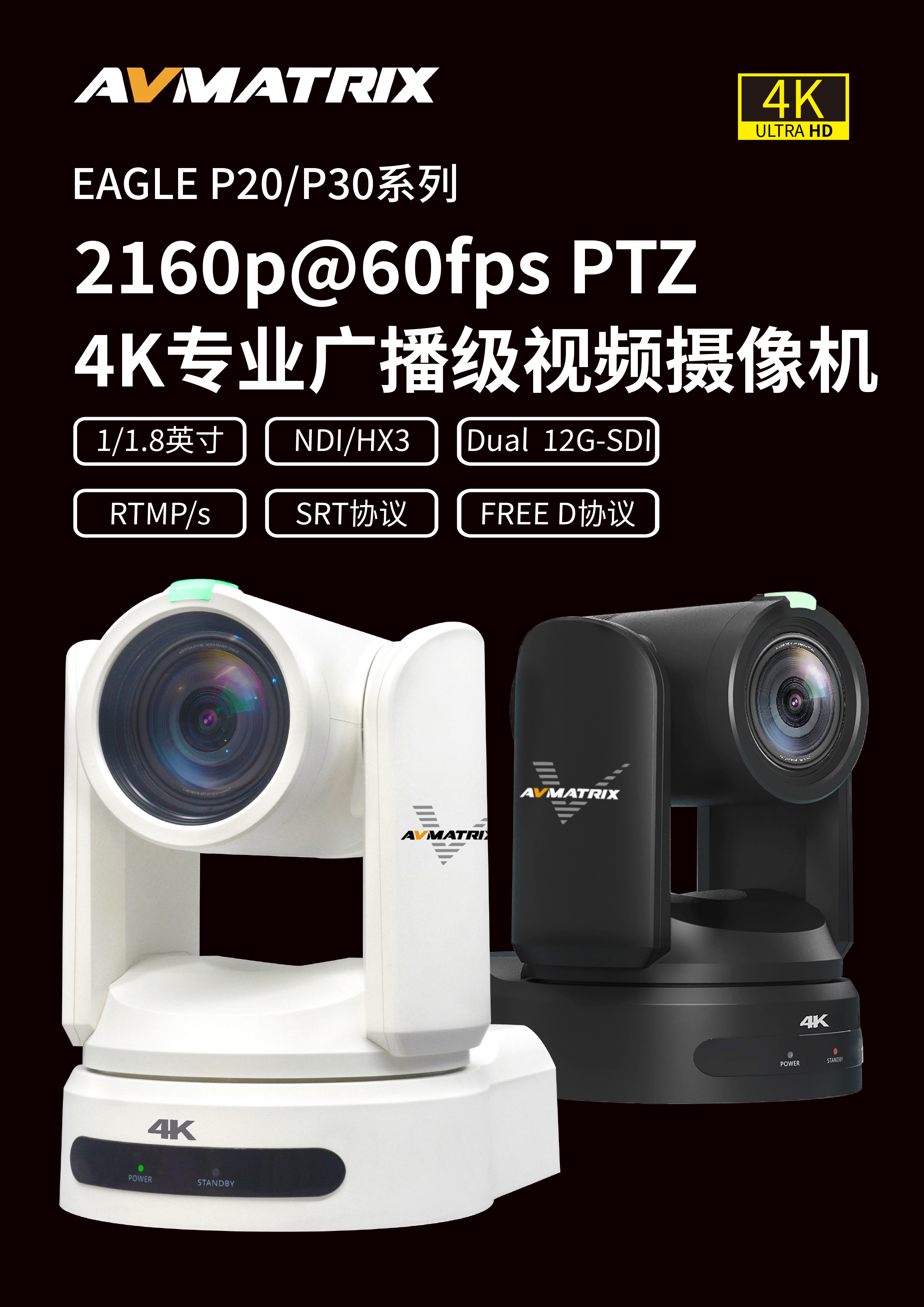 AVMATRIX 4K P20 (20x 倍光學變焦) / P30 (30x 倍光學變焦) 專業廣播級 PTZ 帶NDI 功能 攝影機
