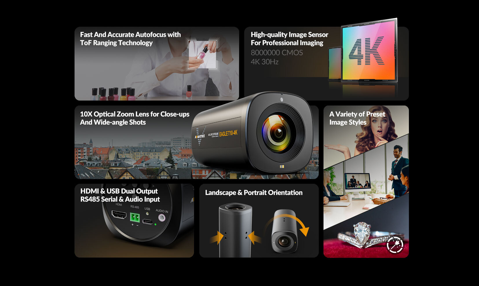 AVMATRIX EAGLE T10-4K 4K 10倍變焦 TOF 快速自動對焦直播攝像頭