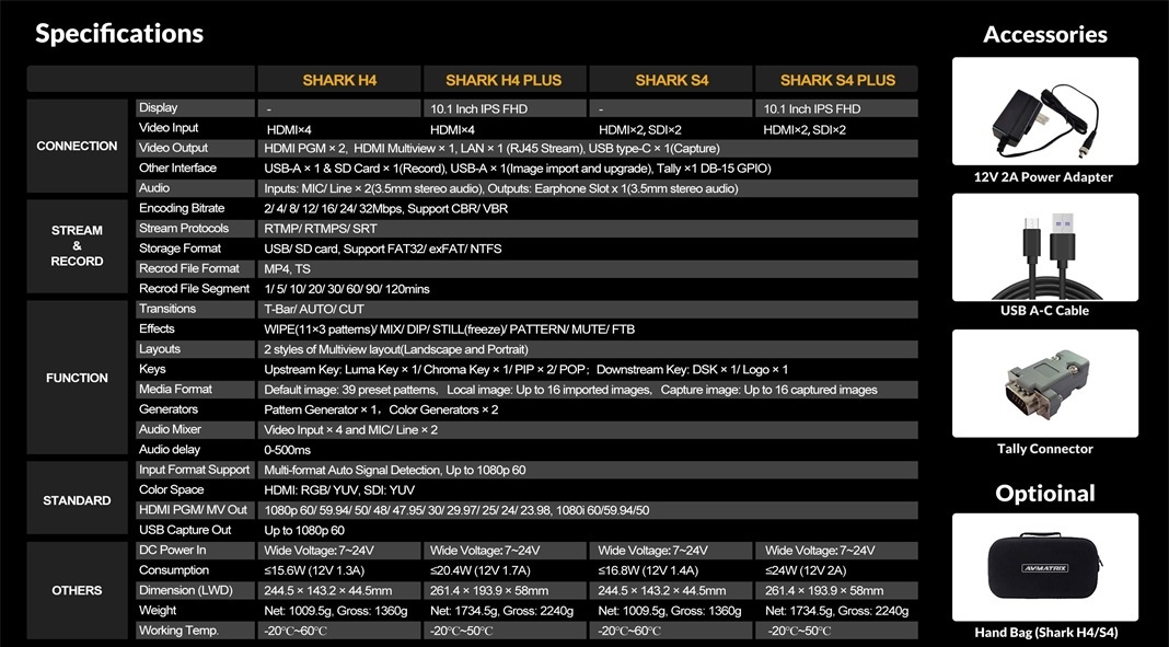 AVMATRIX 4 路 SDI/HDMI 串流視訊導播機SHARK S4/H4