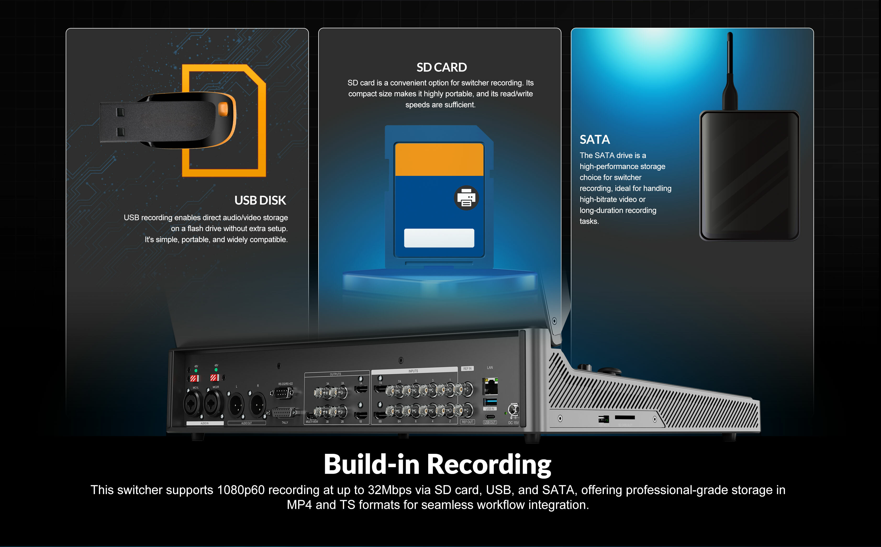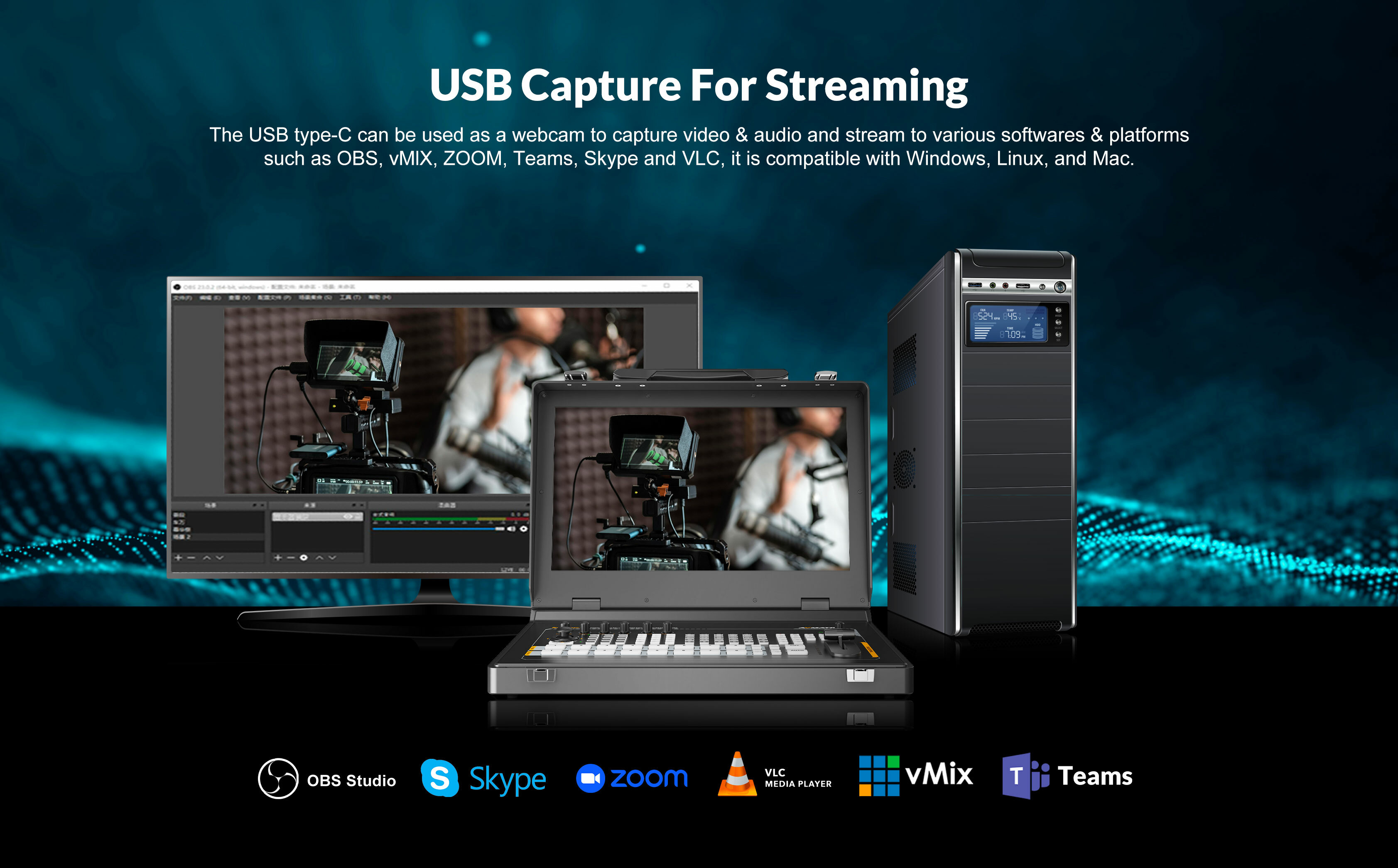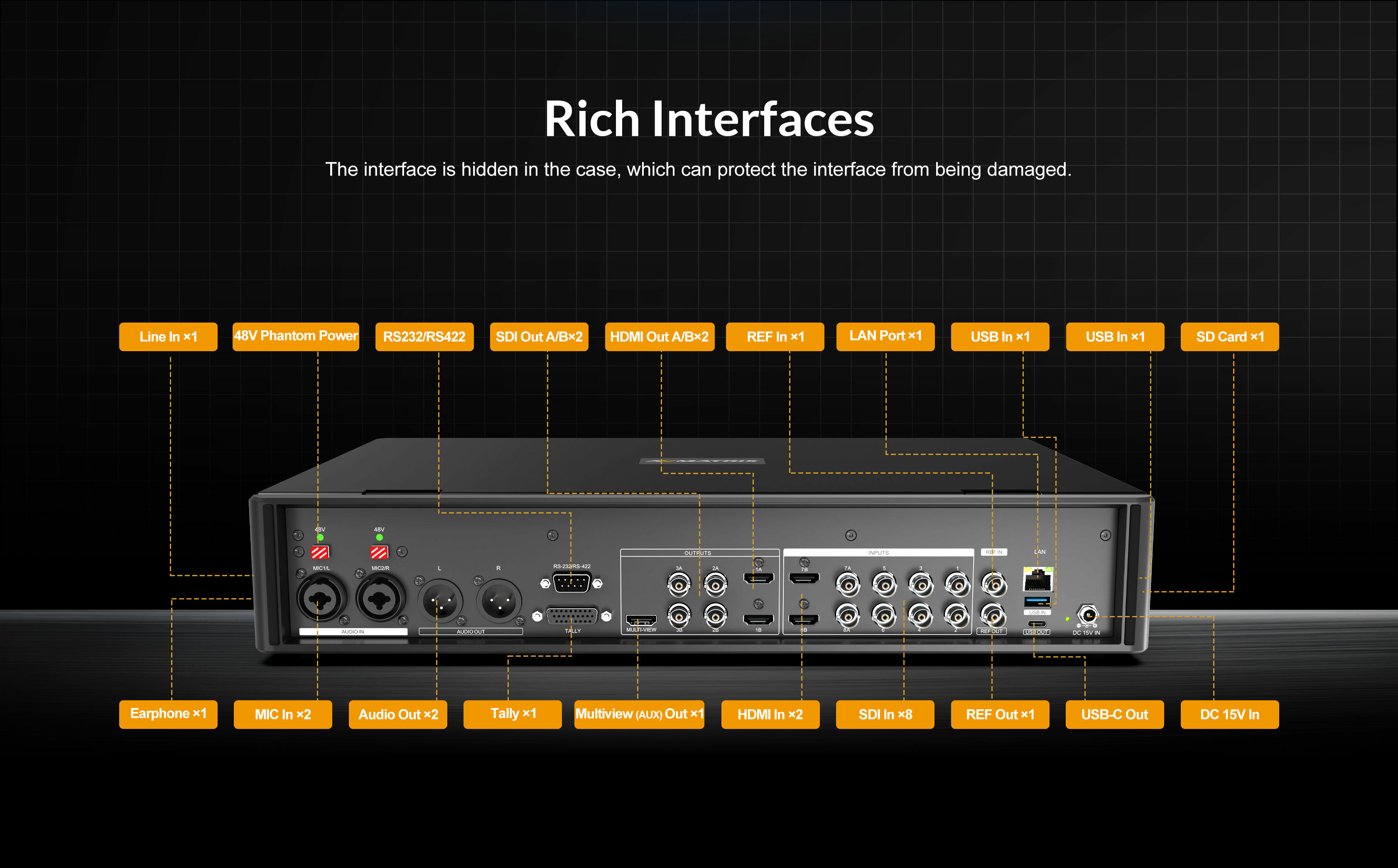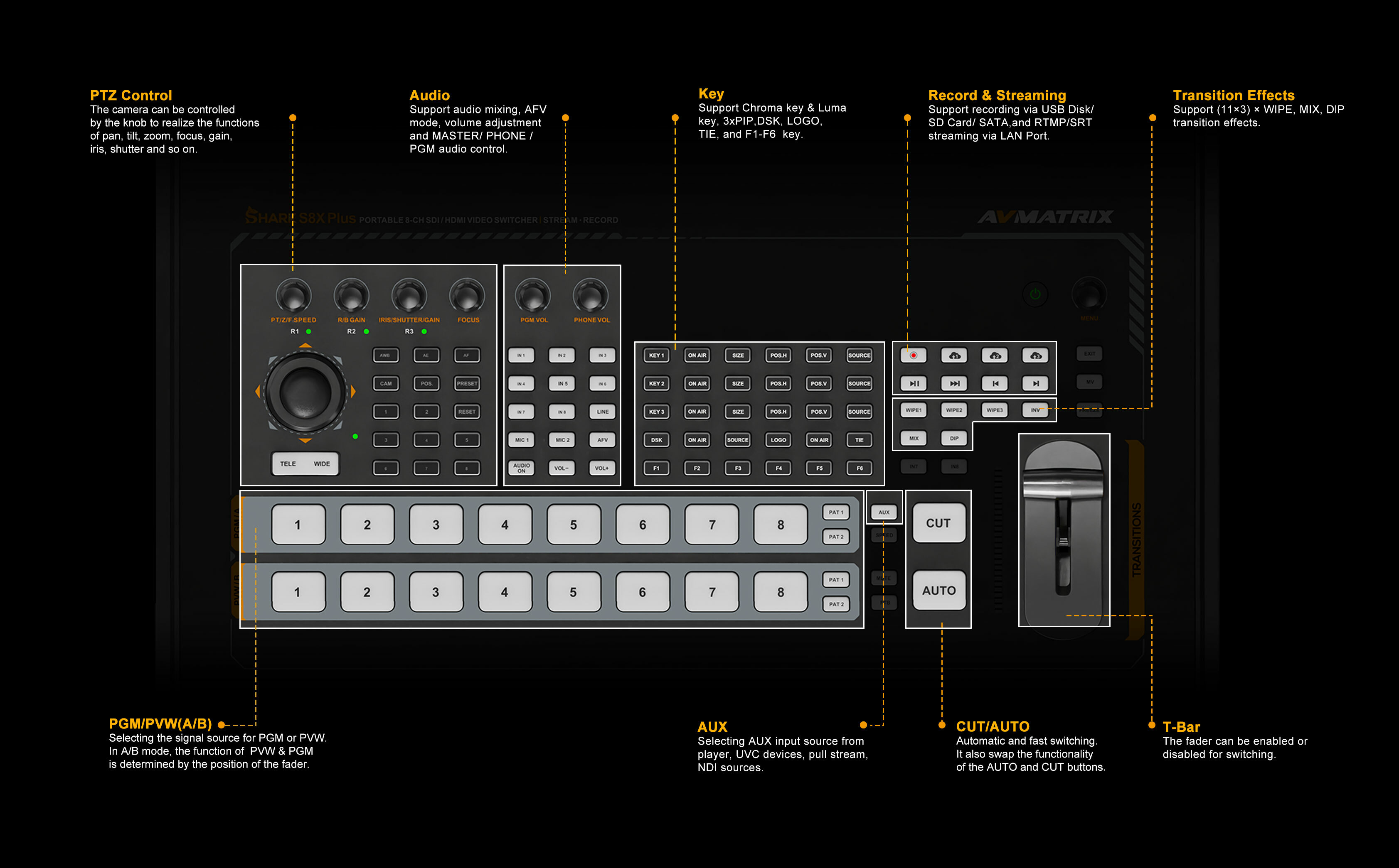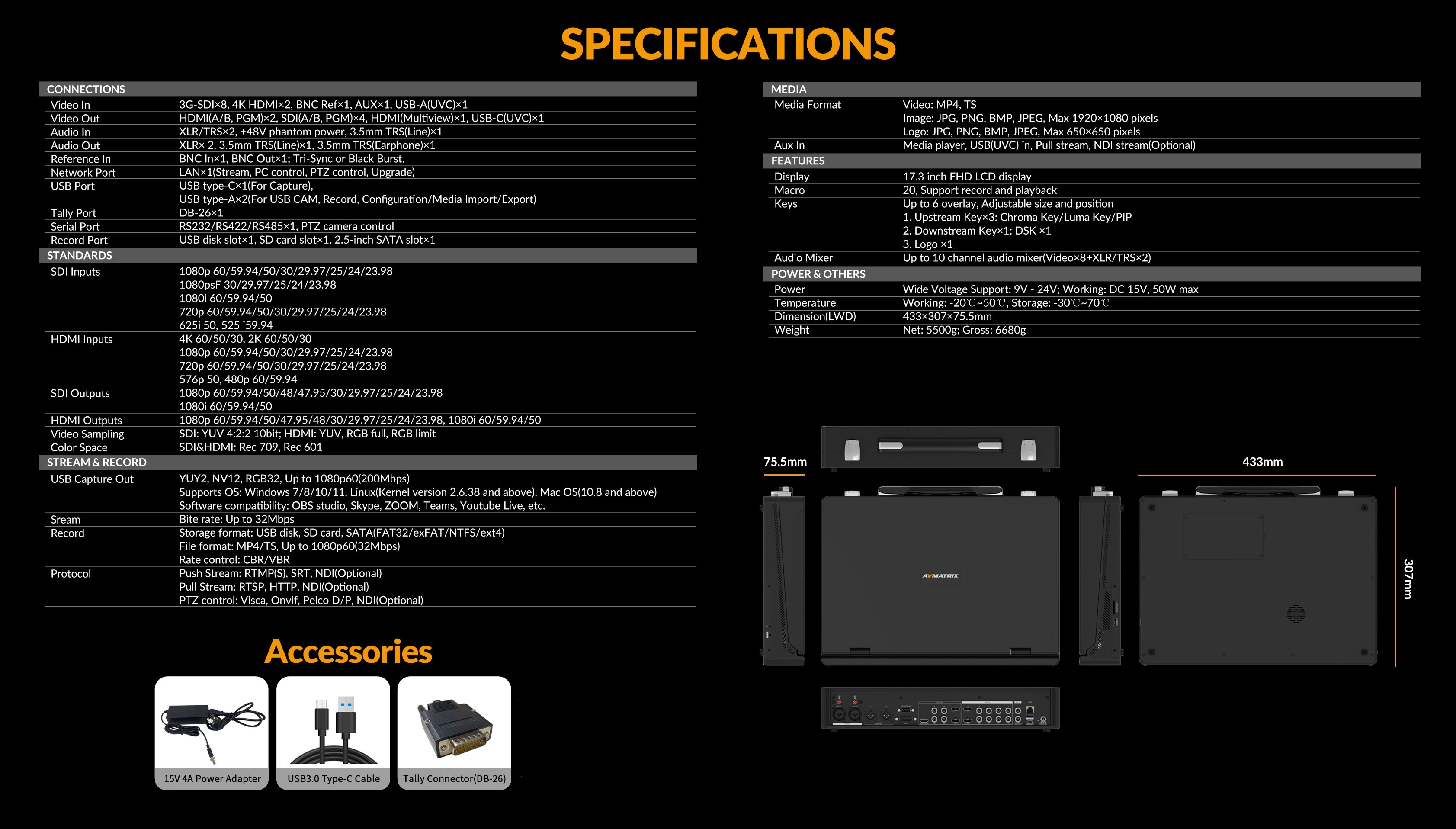 這款8通道SDI/HDMI專業視訊切換器是集多路訊號切換、直播串流、錄製及PTZ攝影機控制於一體的便攜式製作中心,配備17.3吋觸控螢幕,專為現場活動與廣播需求設計。