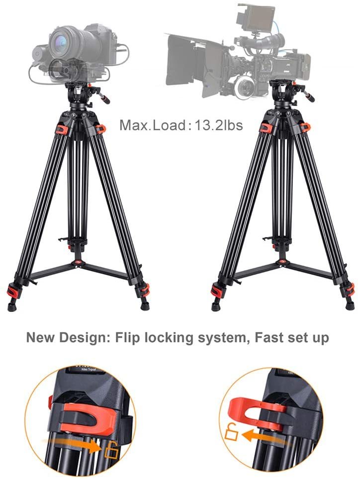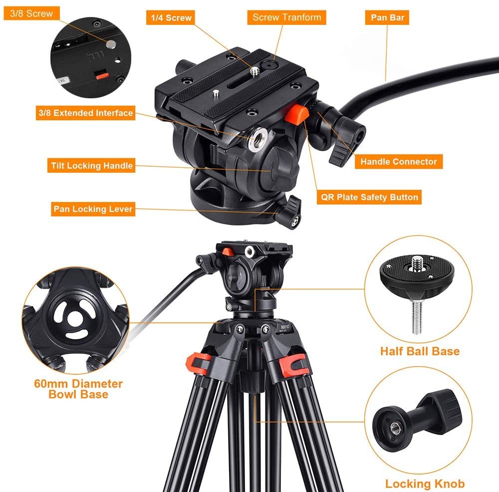 • 帶有 1/4" 和備用 3/8" 螺絲,非常適合大多數品牌的相機和攝像機,如佳能、尼康、索尼。液頭左側的安全按鈕可防止設備掉落。