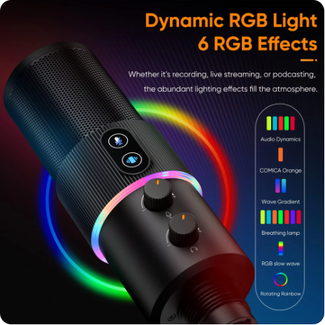 - 6 Unique RGB Effects: Add a touch of creativity to your streams with 6 dynamic RBG effects that sync with your content.
