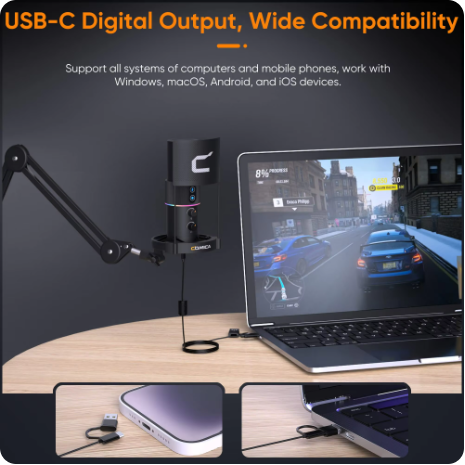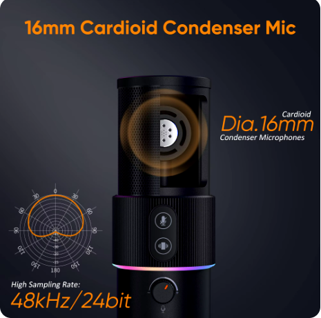 - USB Microphone, Built in Sound Card, 16mm Cardioid Condenser Mic; Capture studio-quality sound with a 16mm cardioid condenser mic, ideal for vocal clarity and noise reduction.