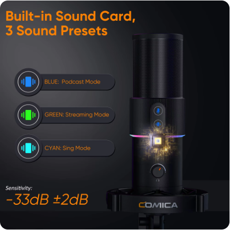 - Built-in Sound Card with 3 Reverb Modes: Ehance your audio with a built-in sound card featuring 3 reverb modes for a personalized recording experience.
