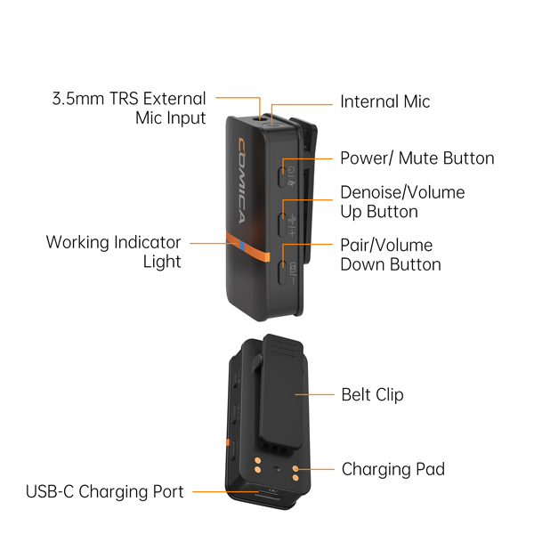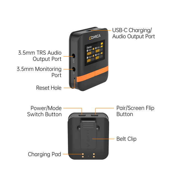 • 即時監聽、一鍵靜音、音量調整、M/S切換