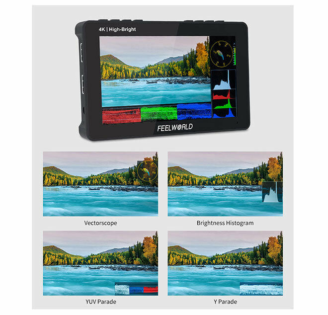 FEELWORLD F5 PROX 5.5 吋 1600nit 高亮 DSLR 攝影機現場監視器 F970 安裝與電源套件