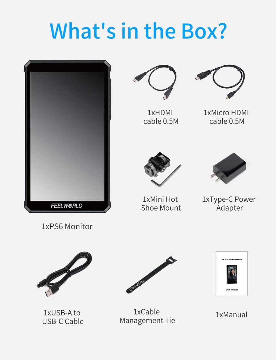 FEELWORLD PS6 5.5吋 550nit OLED 垂直/水平觸控螢幕戶外相機監視器