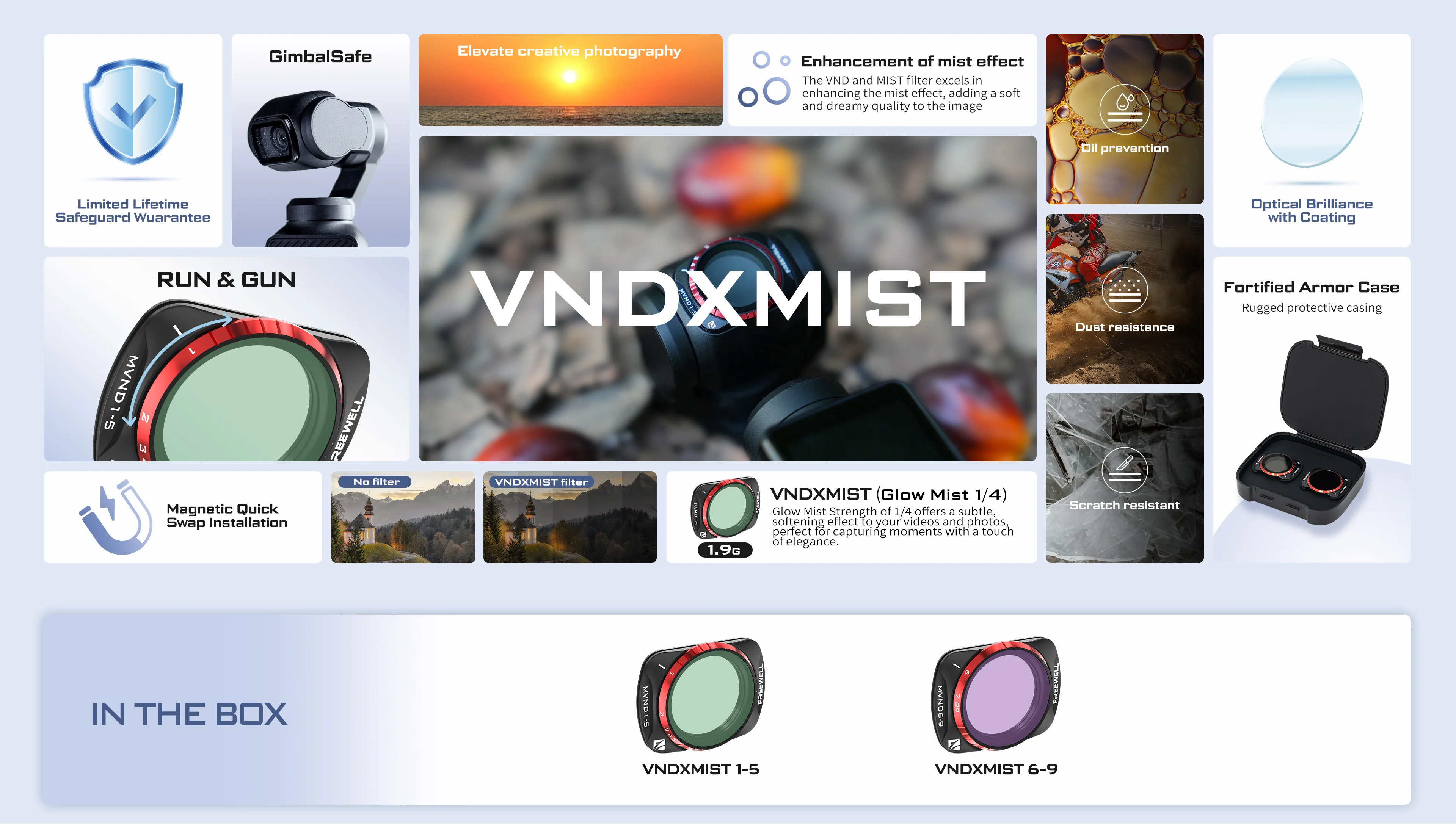 Durable Coating: The filters are resistant to dust, scratches, oil, and water with a color-neutral coating that preserves the natural colors of your scenes.