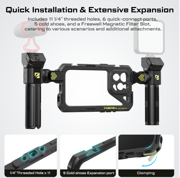 使用可變形的 3 合 1 Freewell iPhone Genius Rig,內容創作者可以享受真正的創作自由。