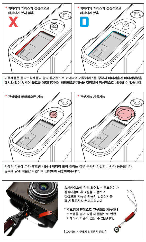 由高品質的真皮製成可以更換電池/存儲卡倉獨特的附件系統,獨立的三腳架安裝。