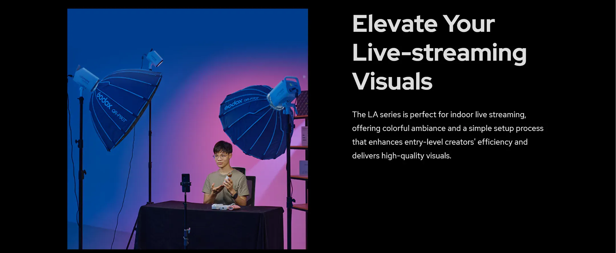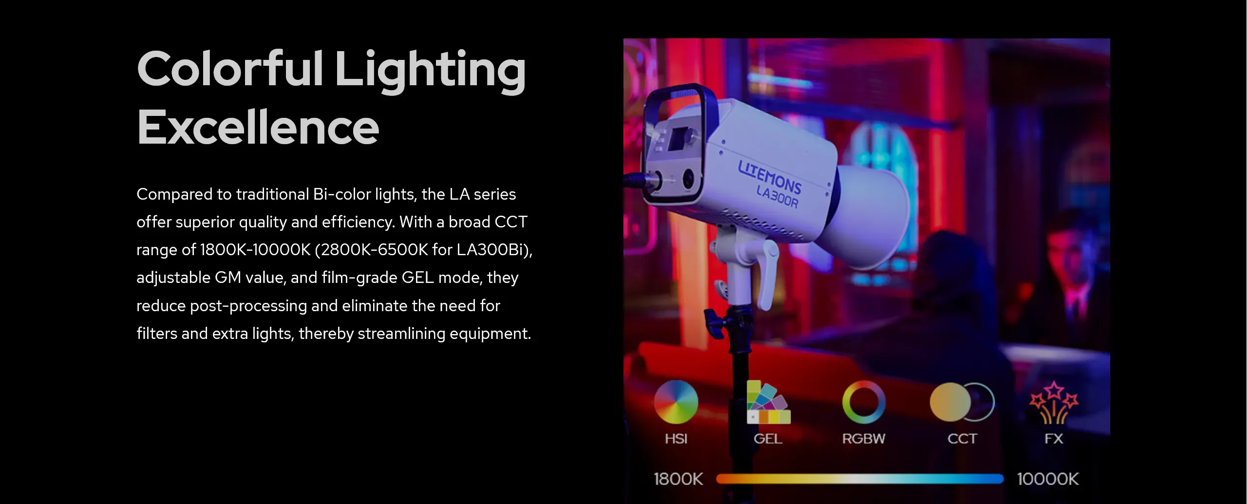 Godox 全彩LED影視燈(LA150R/200R/300R/300Bi)採用影視級燈珠與全彩混光技術,支援1800K-10000K廣色溫範圍,並配備NFC一觸連線、藍牙APP控光及V口電池供電,為專業拍攝提供高效靈活的燈光解決方案。