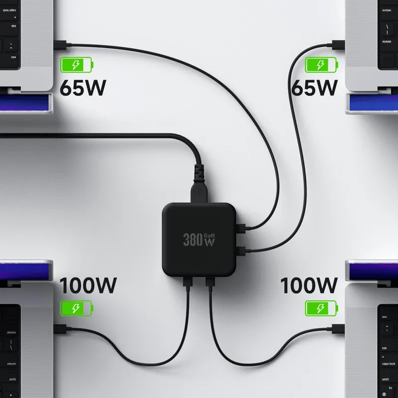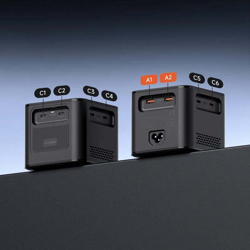Hagibis 380W桌面充电器配备8个端口,支持同时为多达8个设备充电,每个端口最大输出140W,快速为笔记本充电。其GaN技术确保高效低温充电,并具备多重保护功能,兼容多种USB设备。