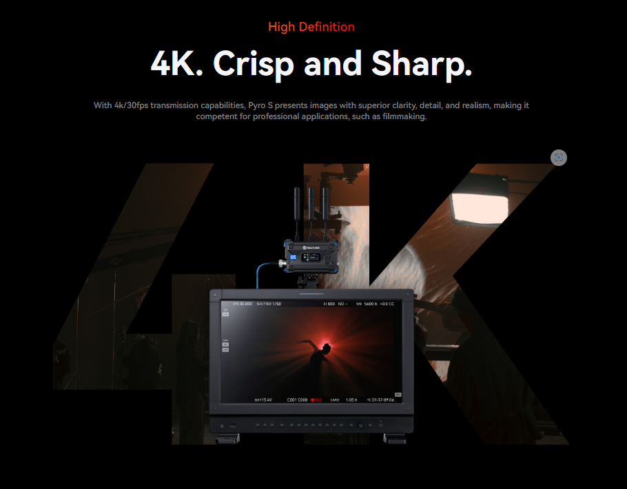 Pyro S’s WifiBroadcast technology enables one transmitter to connect to four receivers with stable signals, offering more flexibility when additional monitoring needs emerge on set.