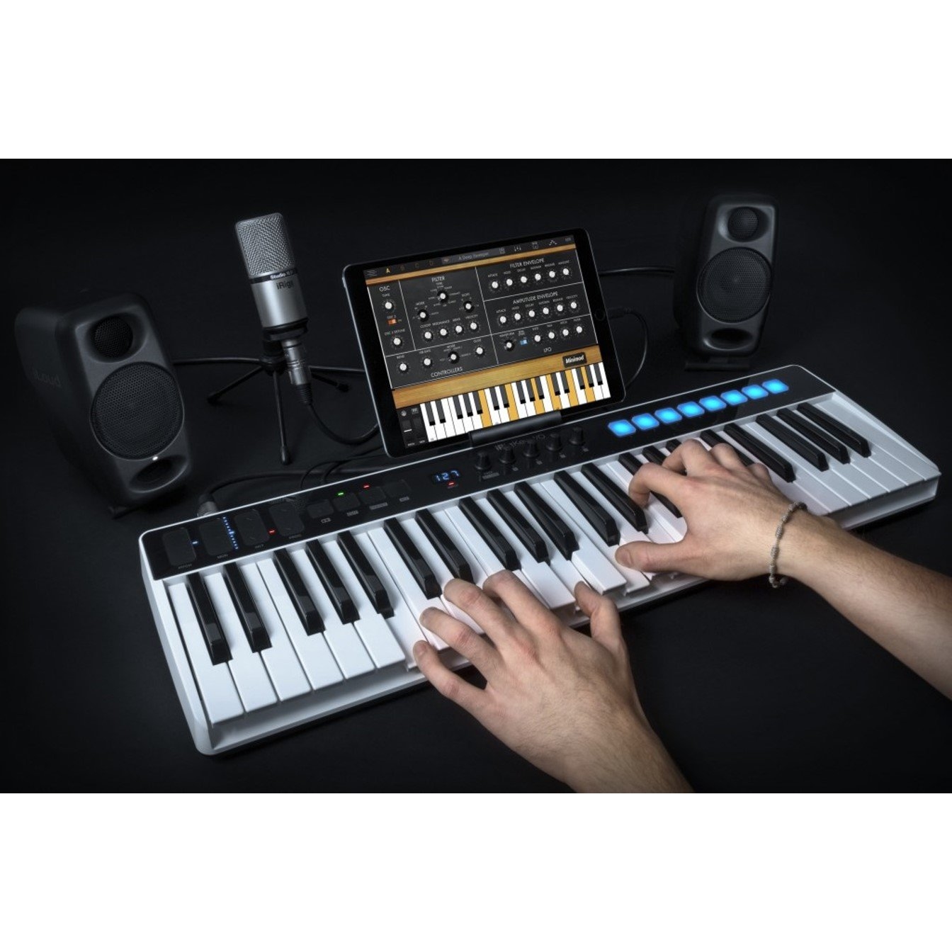 • 提供49或25鍵版本,帶有全尺寸鍵和平滑,力度感應,合奏鍵盤