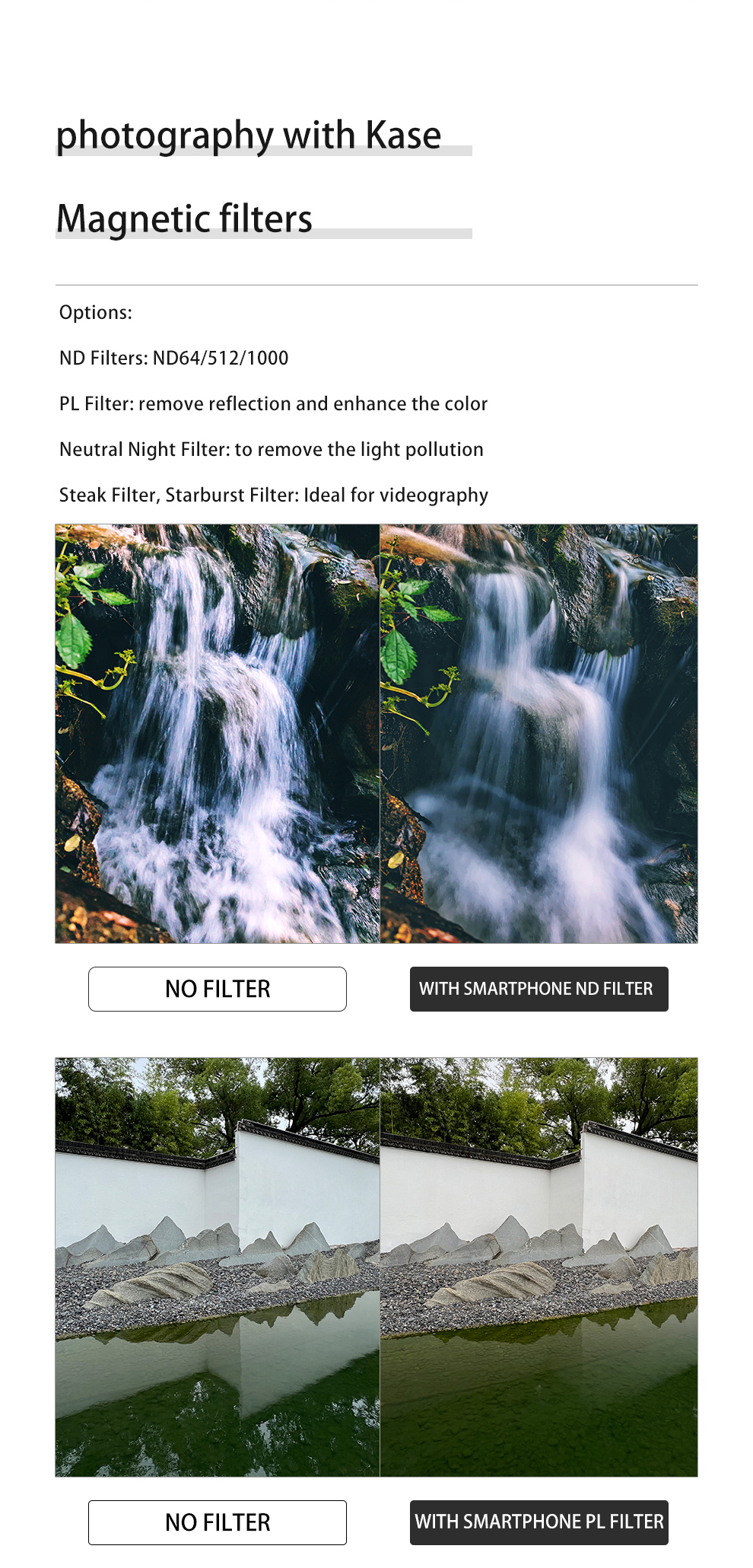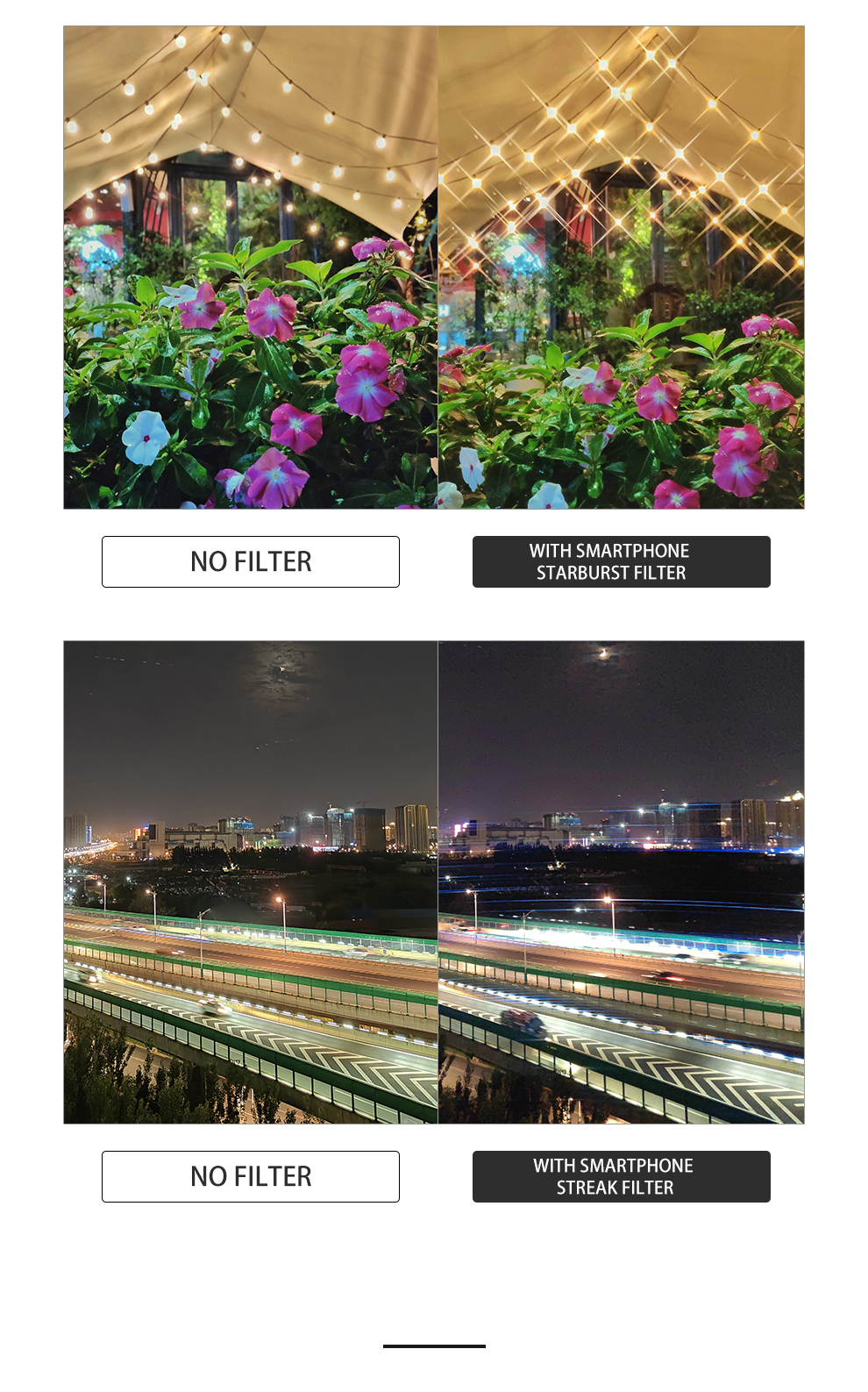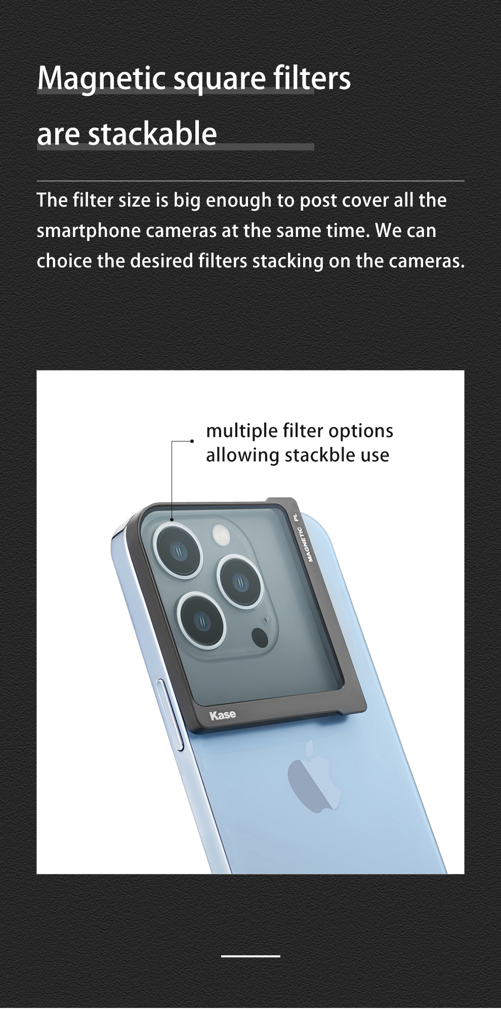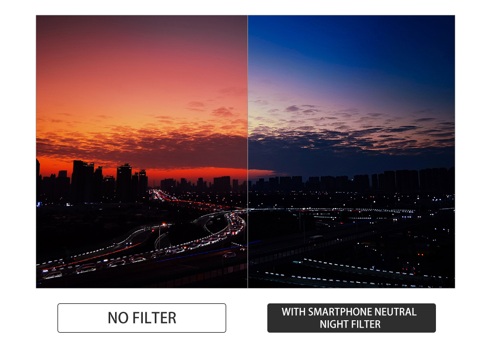 • 【可堆疊】將磁性片貼到智慧型手機或手機保護套背面,濾網可以透過磁性方式快速安裝。具有不同效果的濾鏡可以根據需求堆疊,例如堆疊 CPL 濾鏡和中性夜間濾鏡,以實現更好的圖像。