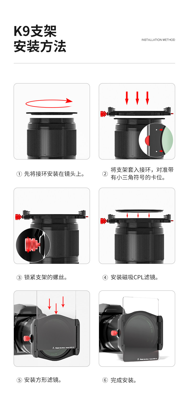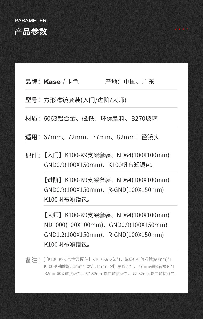 Kase卡色 方形濾鏡套裝100mm濾鏡支架 金剛狼濾鏡套裝 GND ND減光鏡 便攜方鏡收納包 風光攝影濾鏡