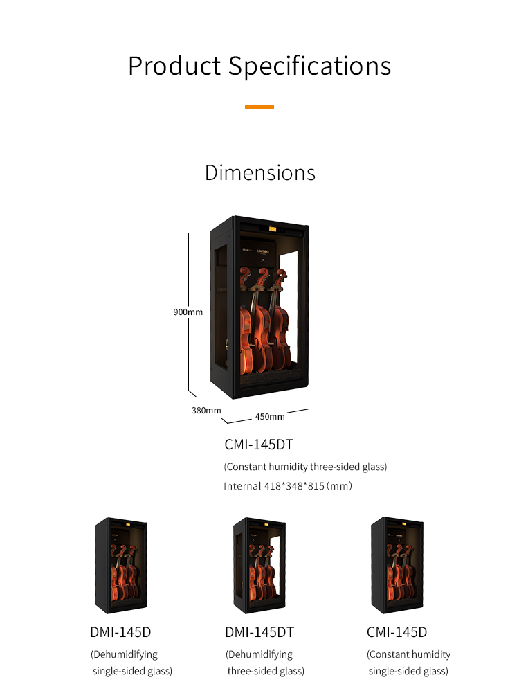 Lenthem CMI-145DT 121L 小提琴用恆定濕度三面玻璃樂器乾燥防潮櫃