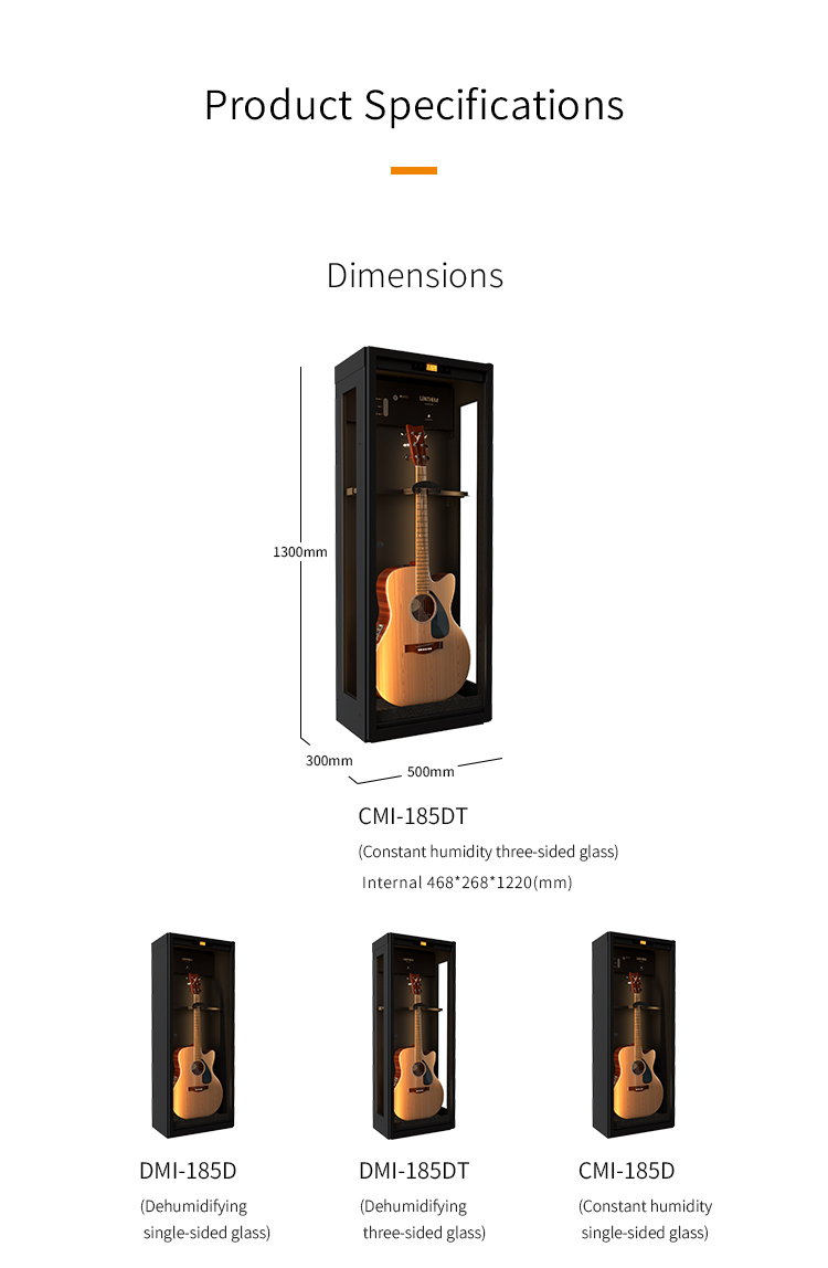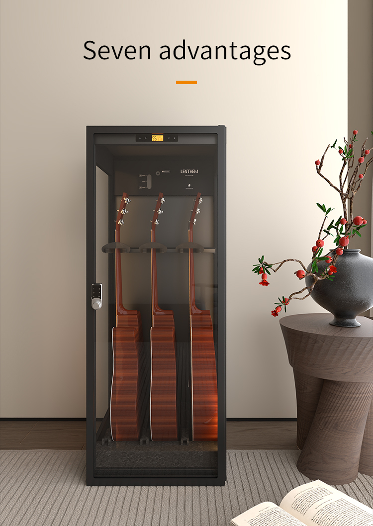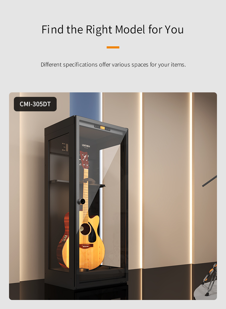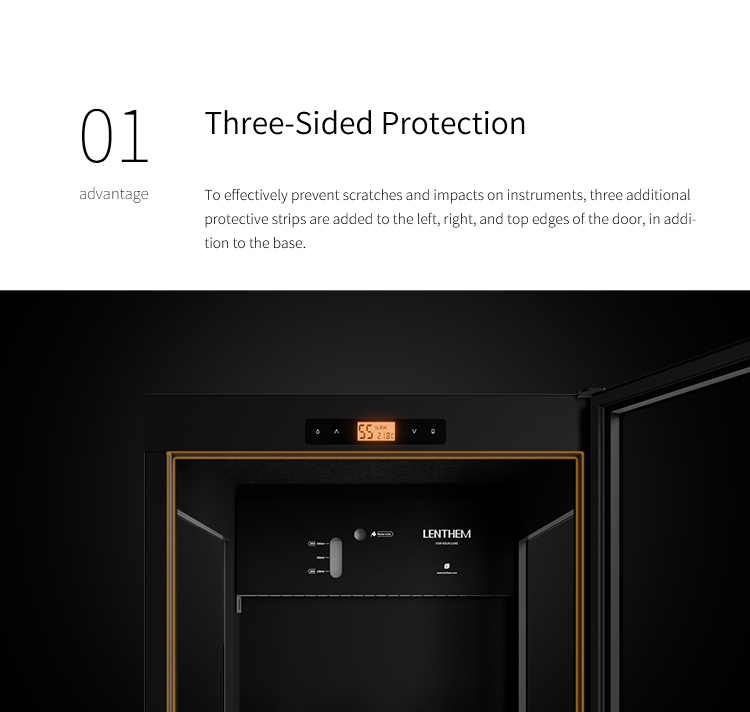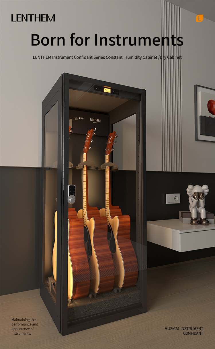 Lenthem 恆濕防潮箱 配備 雙模組(除濕與加濕),支援簡易濕度設定與加水提醒功能,為樂器提供最佳保存環境。