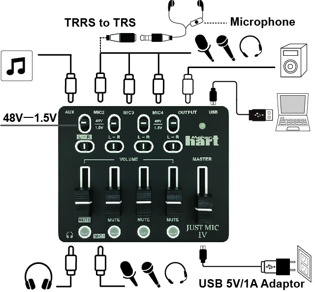 Makerhart Just MIC IV - 迷你麥克風混音器