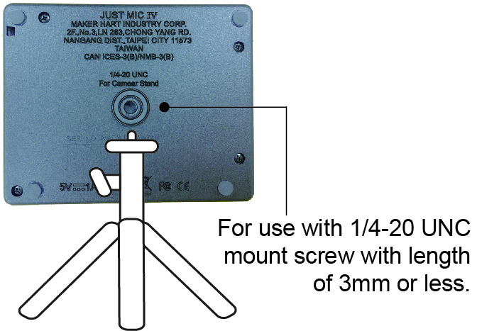 • 三腳架 1/4-20 UNC : 標準螺母孔,螺絲長度3mm以下,方便架設使用。