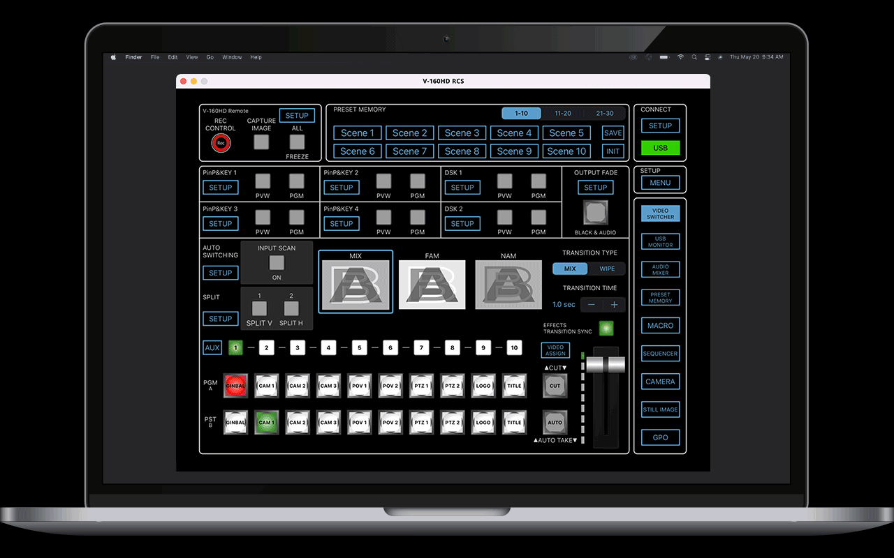 V-160HD全新開發的序列器讓預設與宏指令更加強大,單人操作即可精準執行複雜指令: