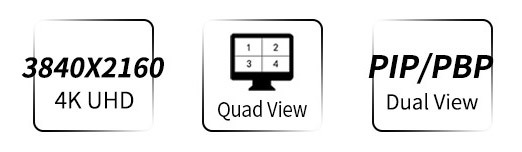 | * Quad Split Display (1P, 2P LR, 2P TB, 2P PIP, 4P) |