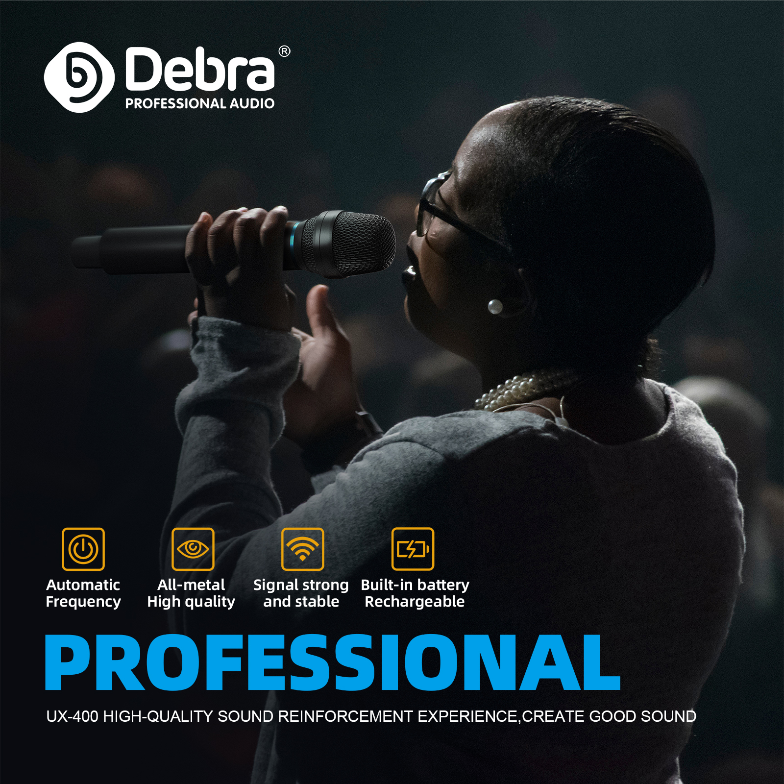 這款無線麥克風使用UHF信號傳輸,金屬材質增強耐用性。具備自動頻率搜索功能,傳輸範圍可達80米(開放區域可達100米),非常適合家庭聚會、會議演講和舞台表演。