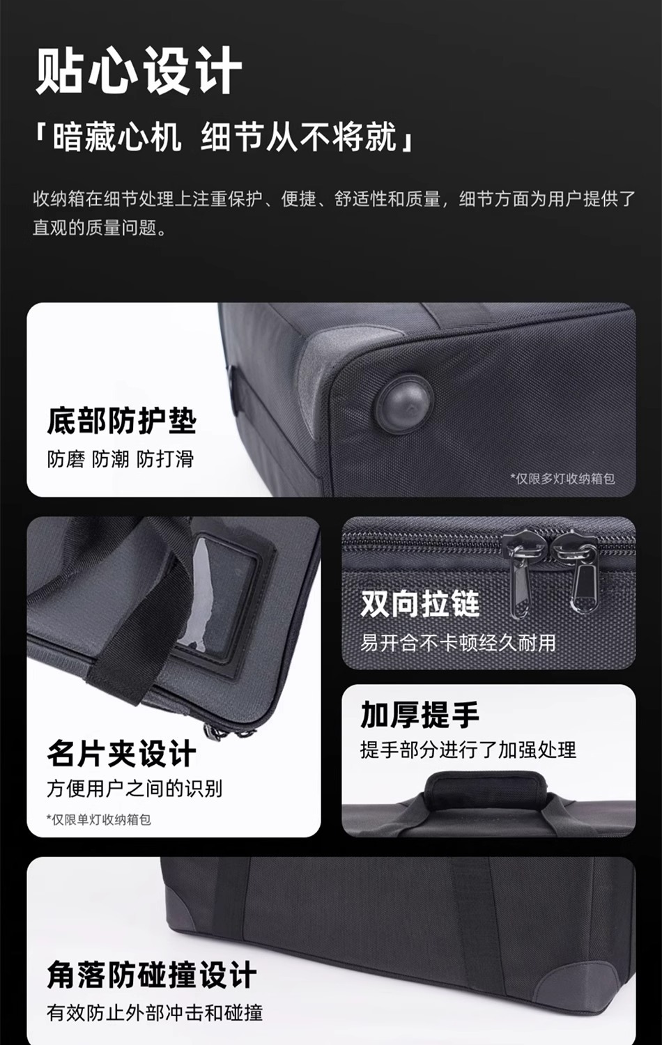 專為安全存放及運輸您的 Amaran 點光源燈具及電源而設計,所有物品均可收納於便攜的保護箱內。