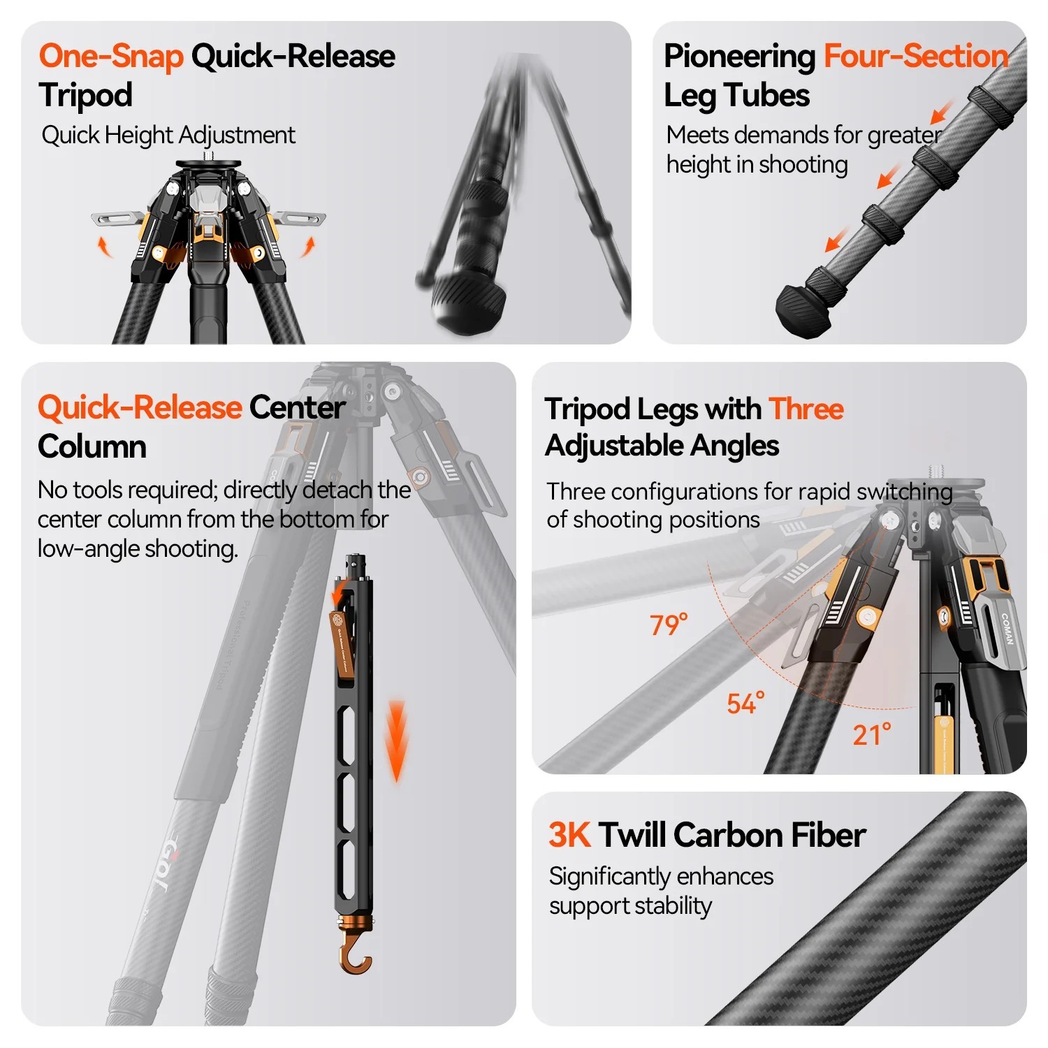 COMAN T1 快速釋放碳纖維三腳架搭配 V5 液壓云台套裝
