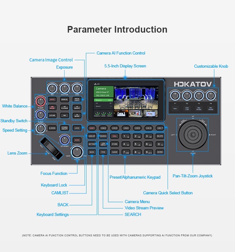 Kato Vision KTKC50 5.5 吋 LCD 螢幕多功能 PTZ 攝影機控制器 配備4K HDMI 輸出